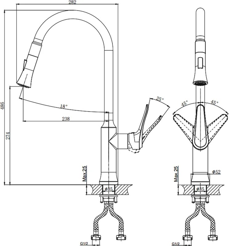 - Смеситель для кухни RUSH арт. JA0735-24 с поворотным изливом и вытяжной лейкой из коллекции Jawa с металлической ручкой, изготовлен из высококачественной латуни и имеет рычажное управление