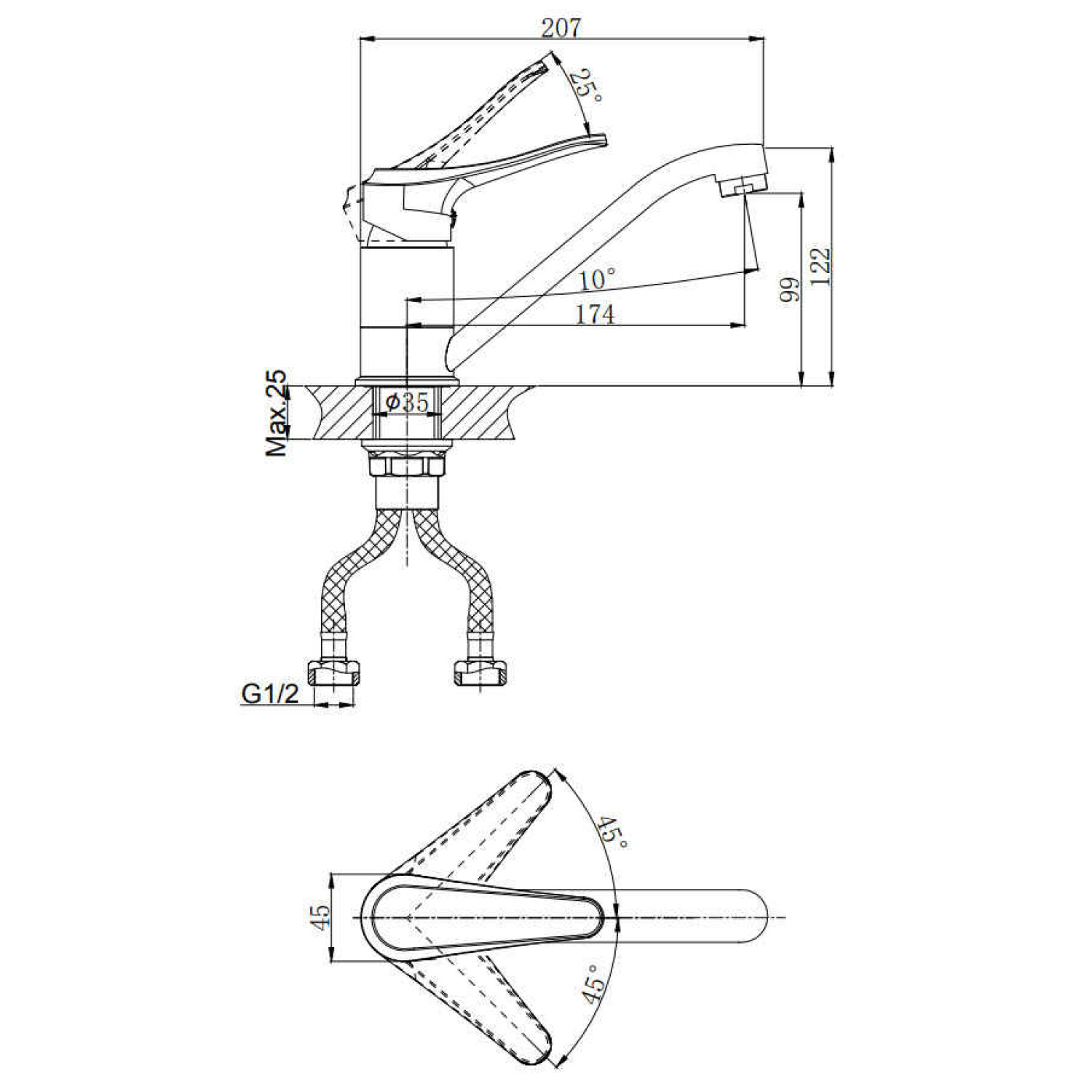 - Смеситель для кухни RUSH арт. JA0735-25 с поворотным изливом из коллекции Jawa с металлической ручкой, изготовлен из высококачественной латуни и имеет рычажное управление.