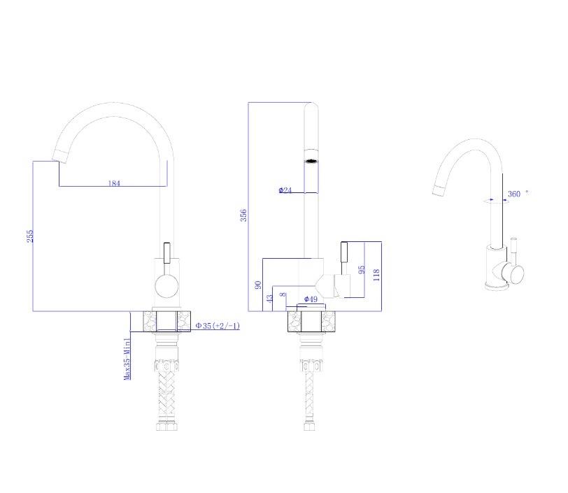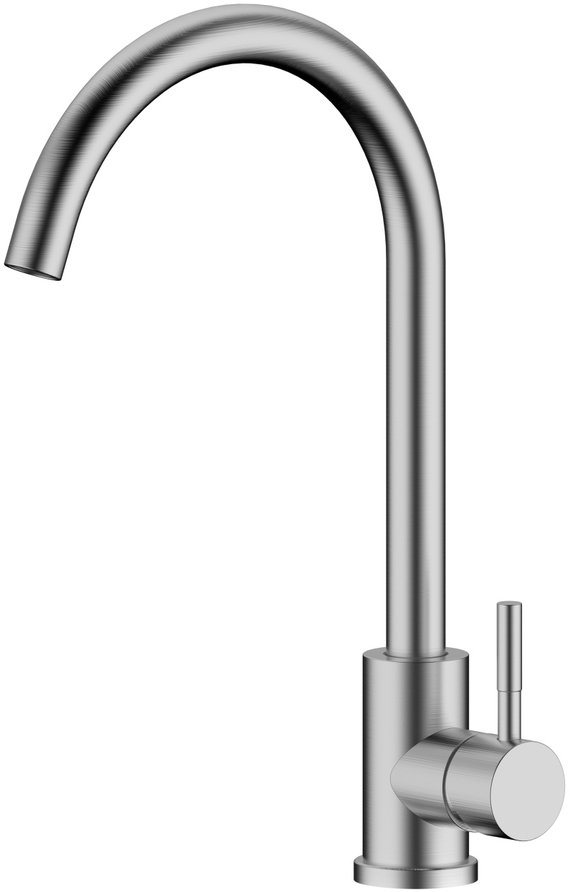 - Смеситель для кухни с высоким поворотным изливом RUSH Melos арт. SUS1101-22 с металлической ручкой изготовлен из нержавеющей стали SUS304 и имеет рычажное управление.