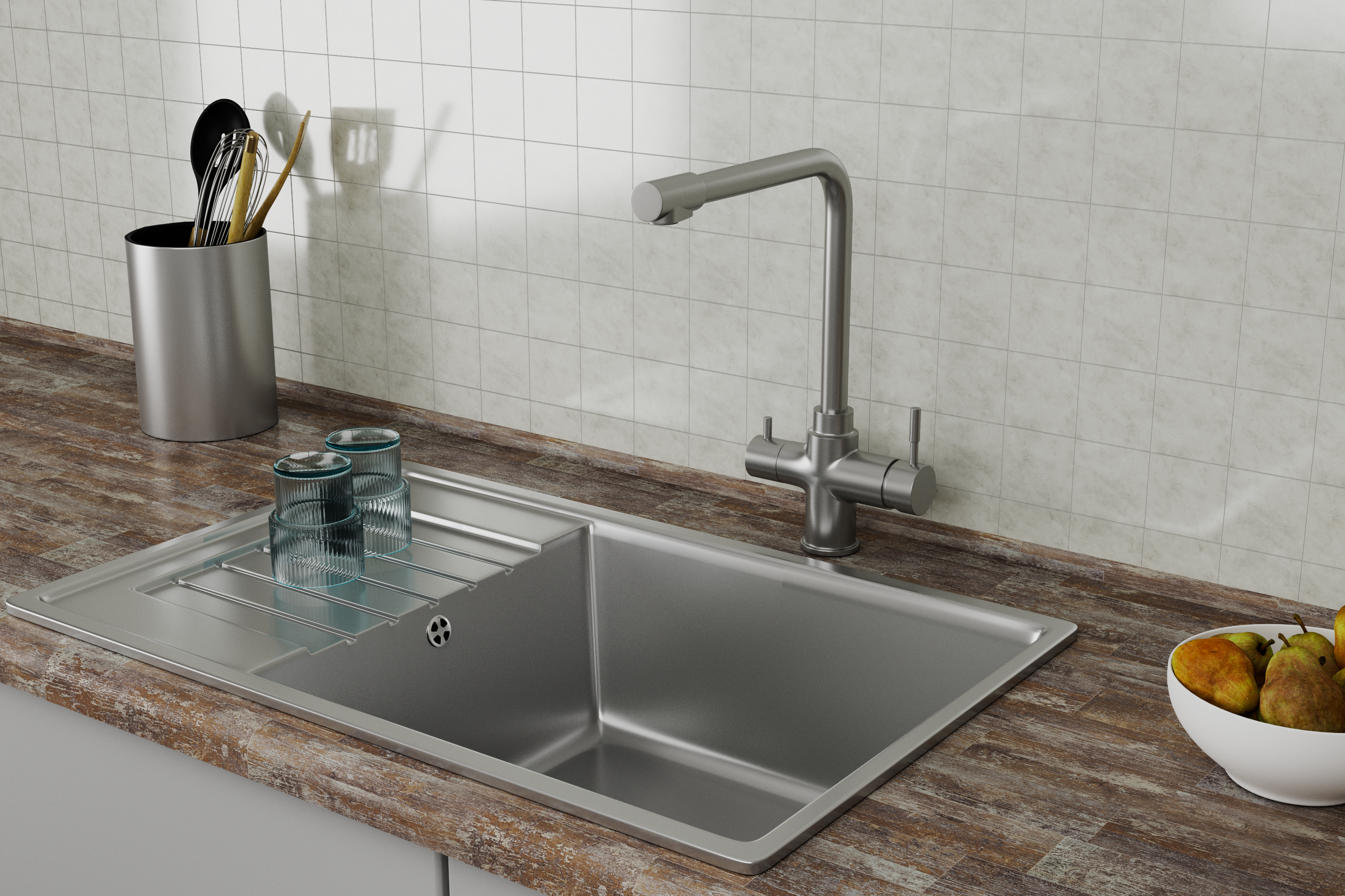 - Смеситель для кухни с подключением к фильтру с питьевой водой RUSH арт. MS9035-33 изготовлен из нержавеющей стали и имеет рычажное управление.