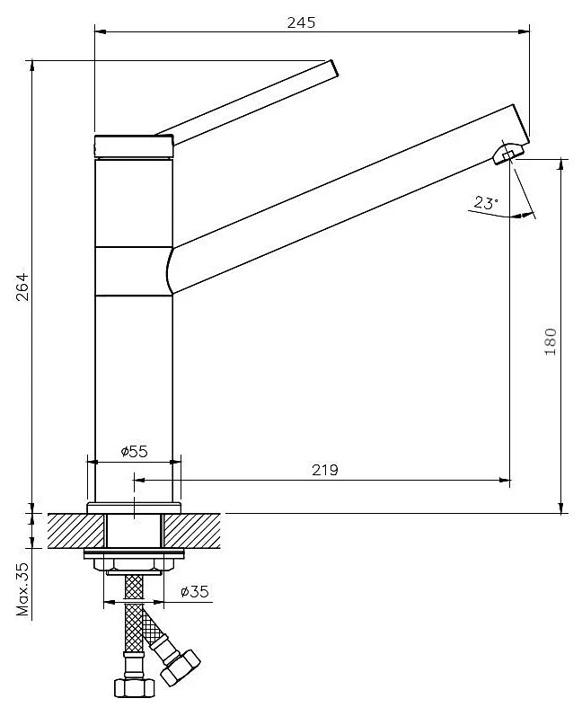 - Аэратор изготовлен из пластика с нержавеющим корпусом, угол наклона аэратора- 23 градуса