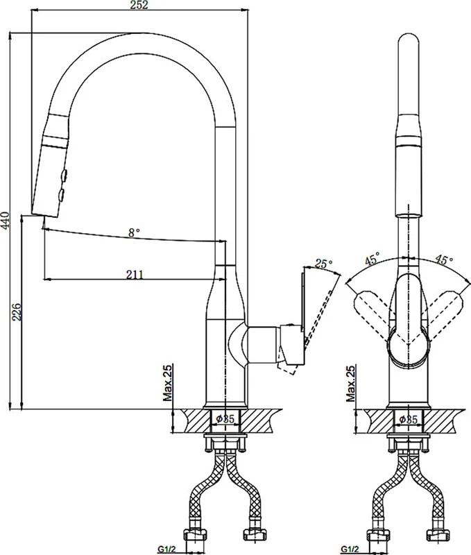 - Аэратор изготовлен из пластика с нержавеющим корпусом, угол наклона аэратора- 8 градусов