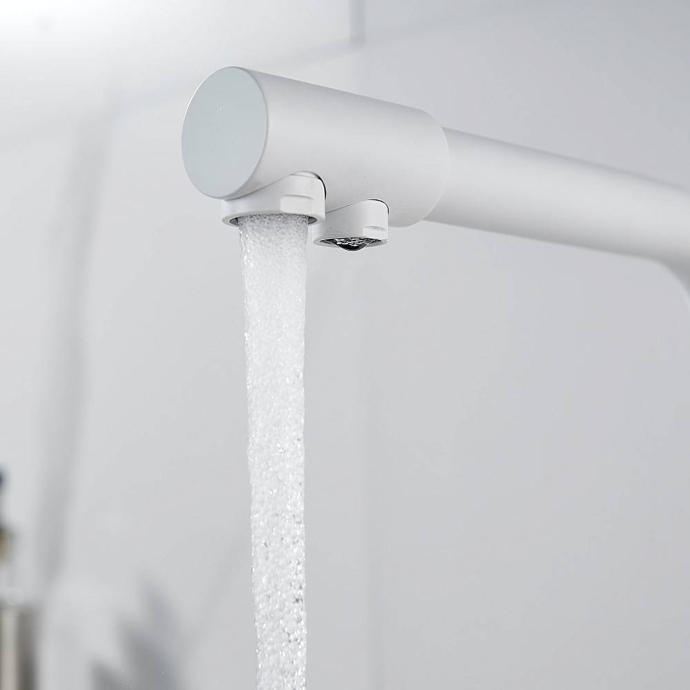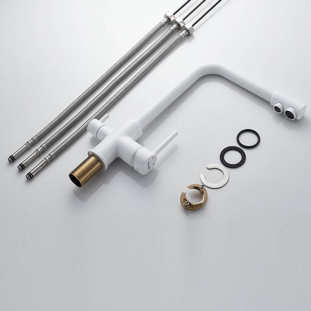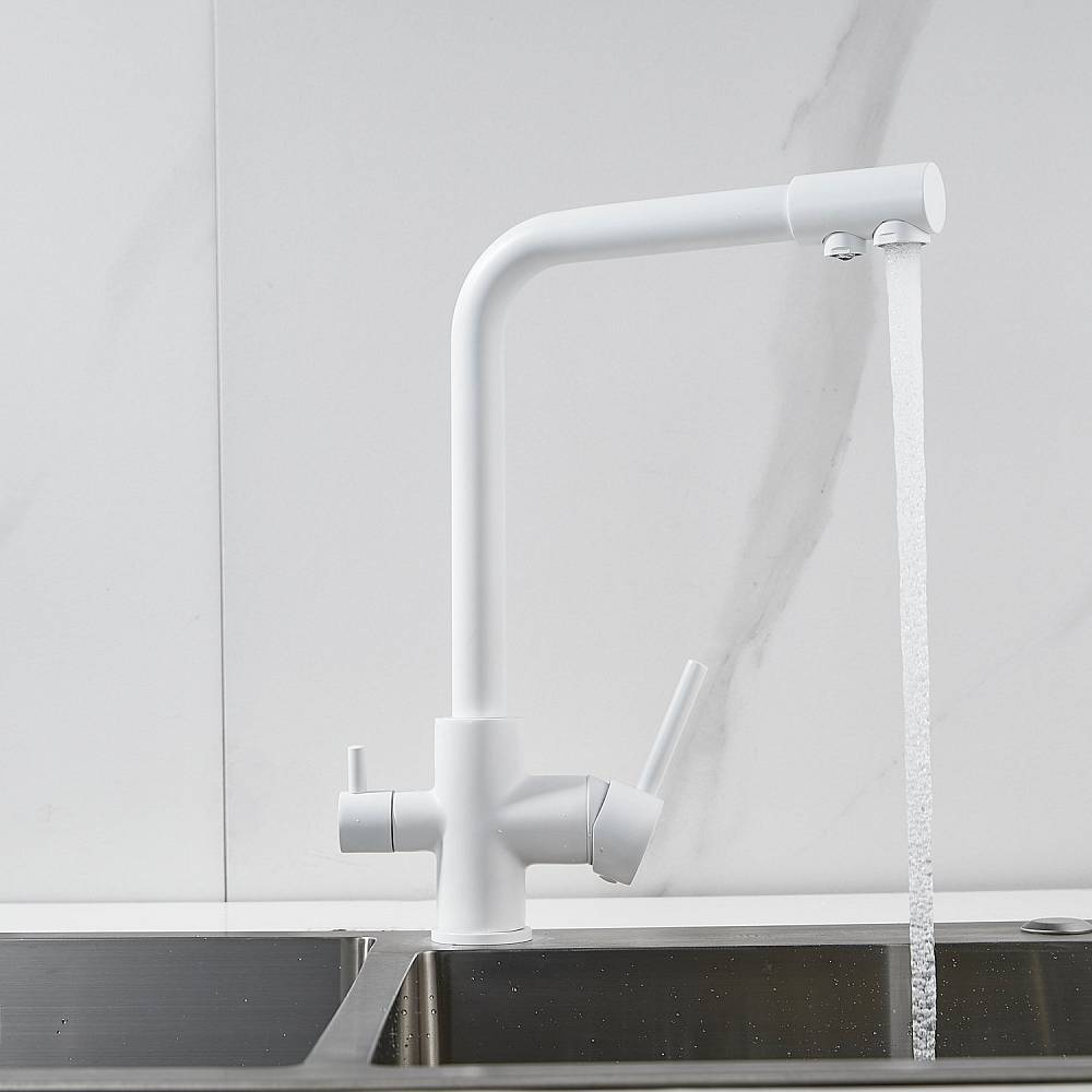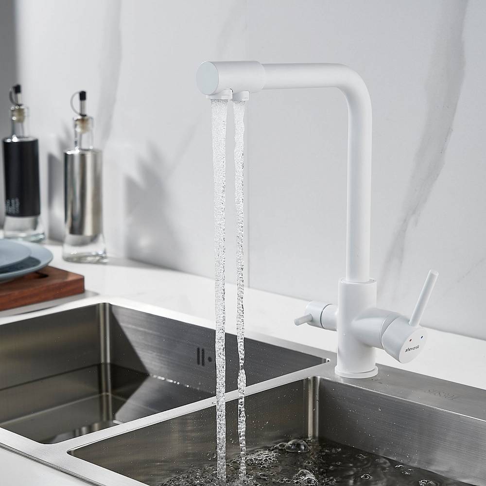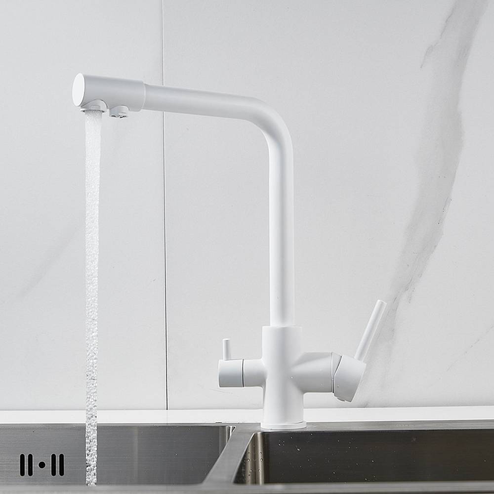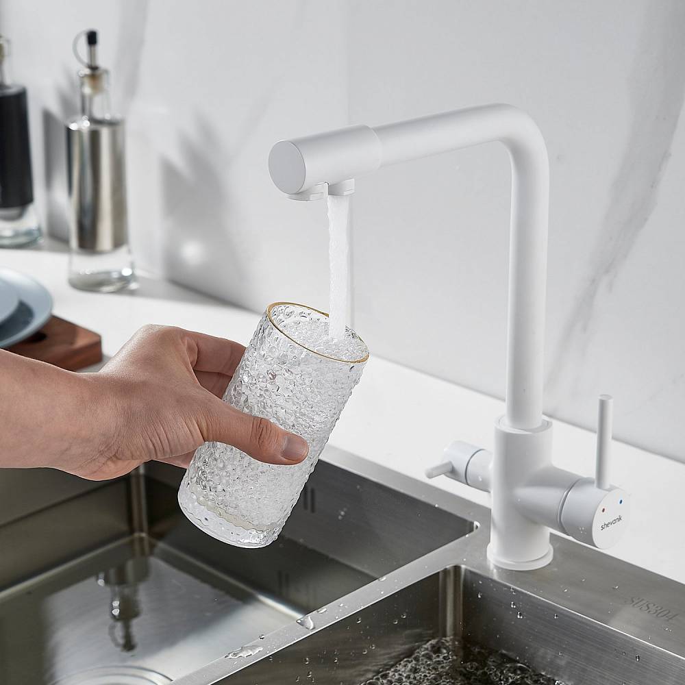 - Поворотный излив позволит легко настроить струю воды под любые ваши нужды, а встроенный канал для питьевой воды облегчит процесс фильтрации и подачи воды.