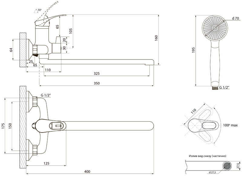 | Длина излива, см | 32.5 |