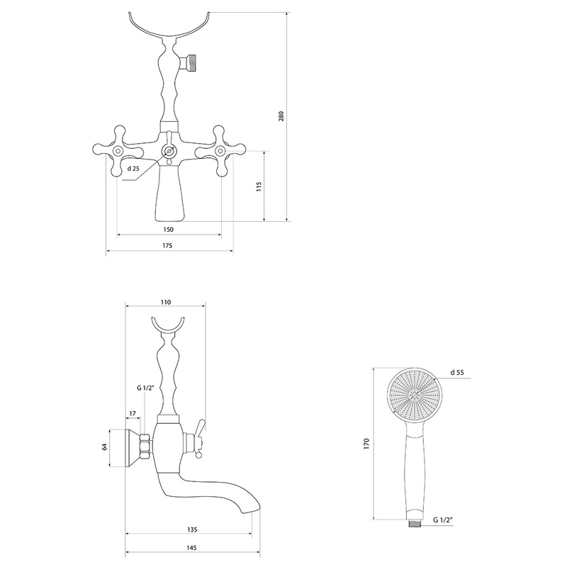 | Оснащение | душевой шланг, эксцентрики, переключатель потоков, душевая лейка, аэратор, держатель для душа |