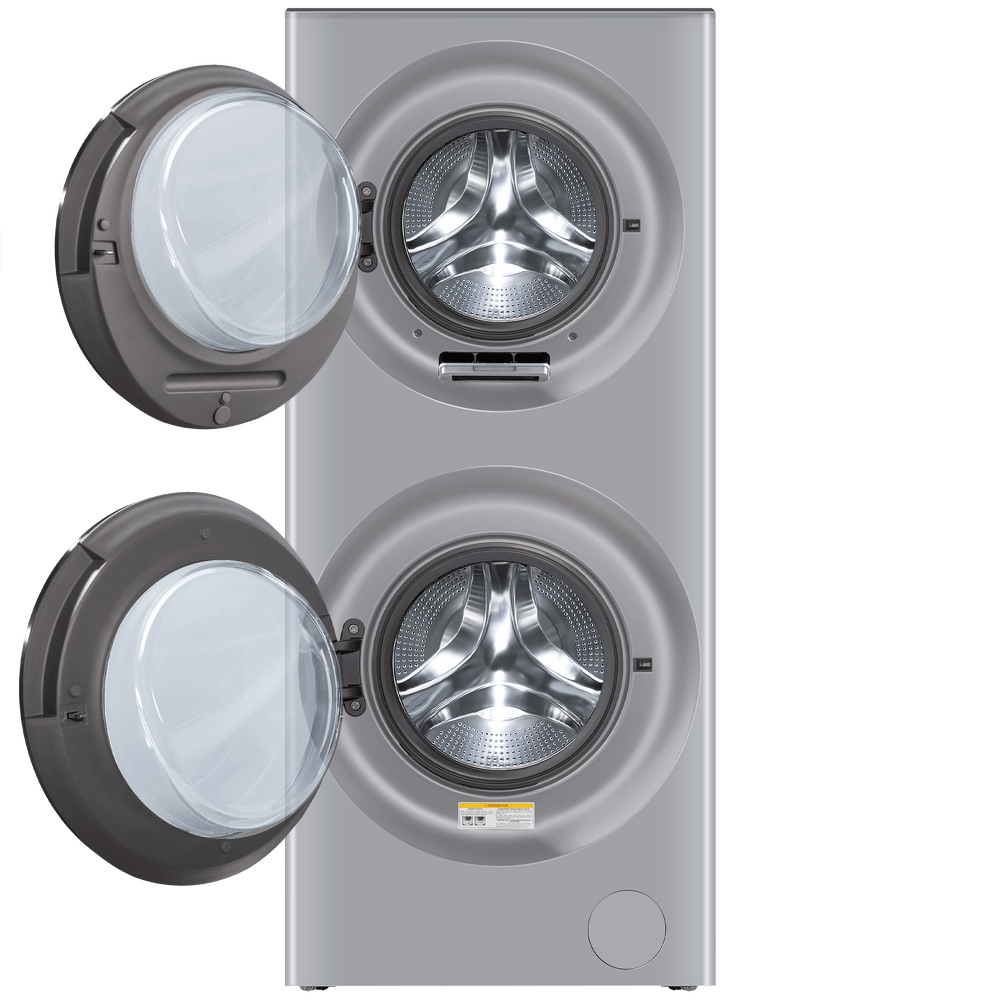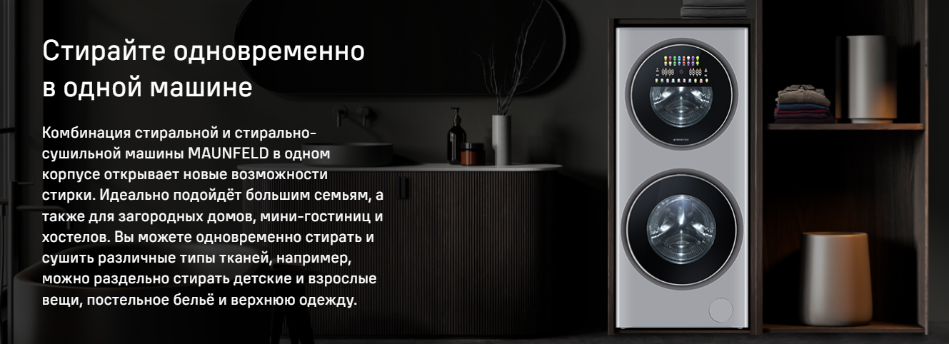 - Стирка в двух барабанах одновременно Вы можете стирать различные типы тканей или виды белья одновременно, например, постирав детские вещи отдельно от взрослых.