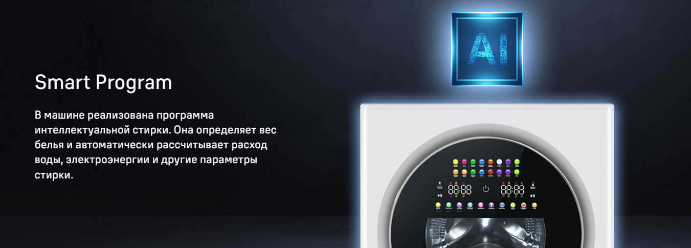- SmartProgram В данном режиме интеллектуальной стирки машина определяет вес белья и автоматически рассчитывает объем потребления воды и электроэнергии в процессе стирки.