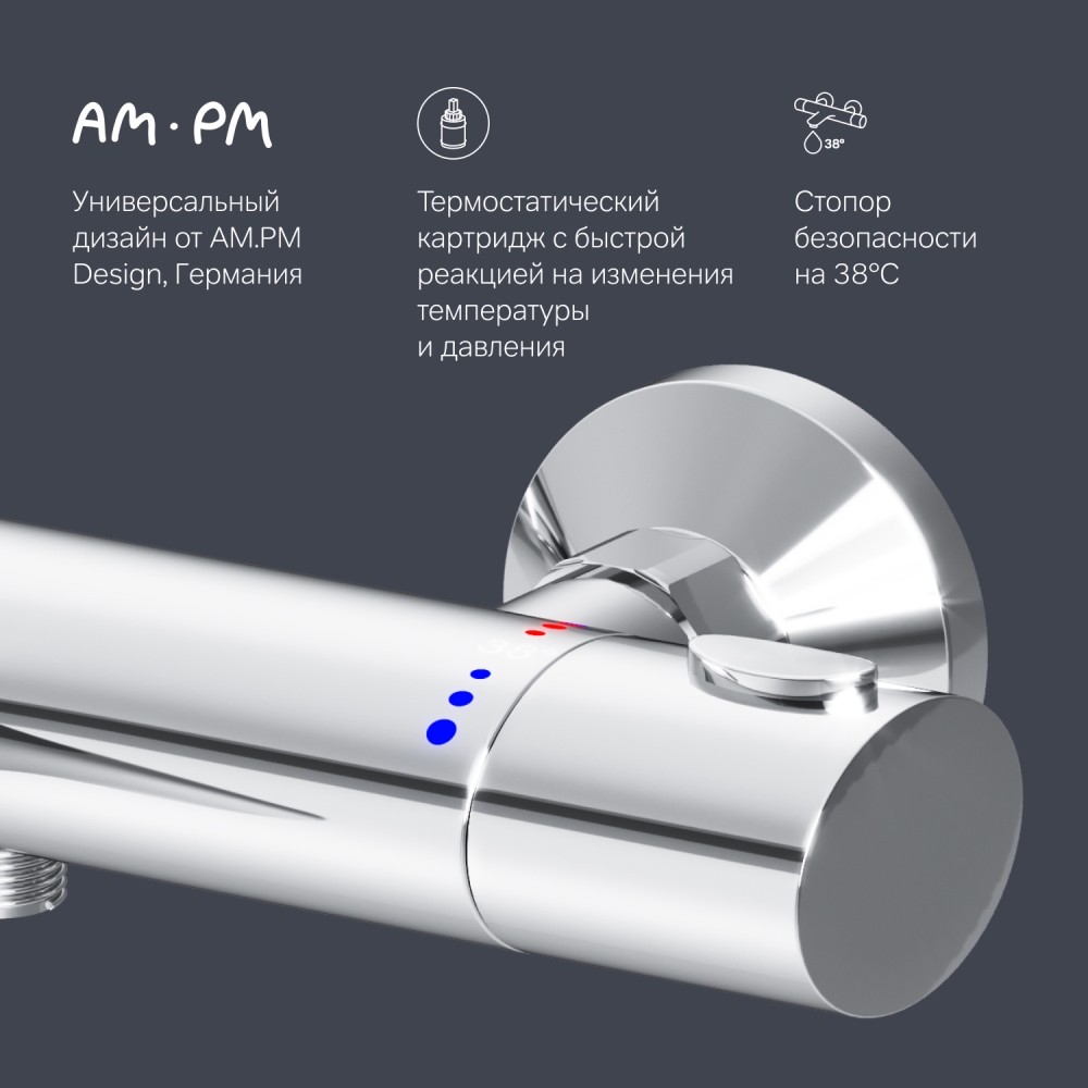 Cмеситель для ванны и душа AM.PM Sense F7550064 с термостатом.