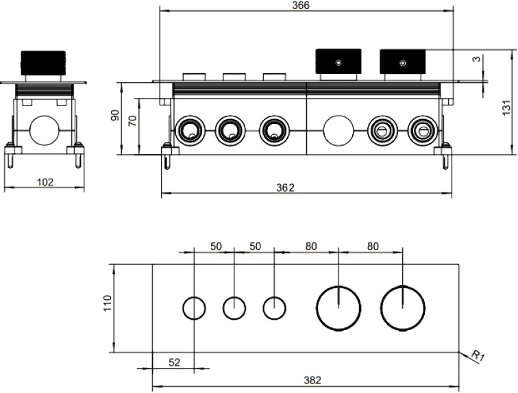 | Переключатель на | излив, верхний душ, душевую лейку |