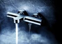 Термостатический смеситель с фиксированным изливом, монтируемый в два отверстия. Идеальный вариант для интерьера в современном стиле с геометрическим направлением по доступной цене.