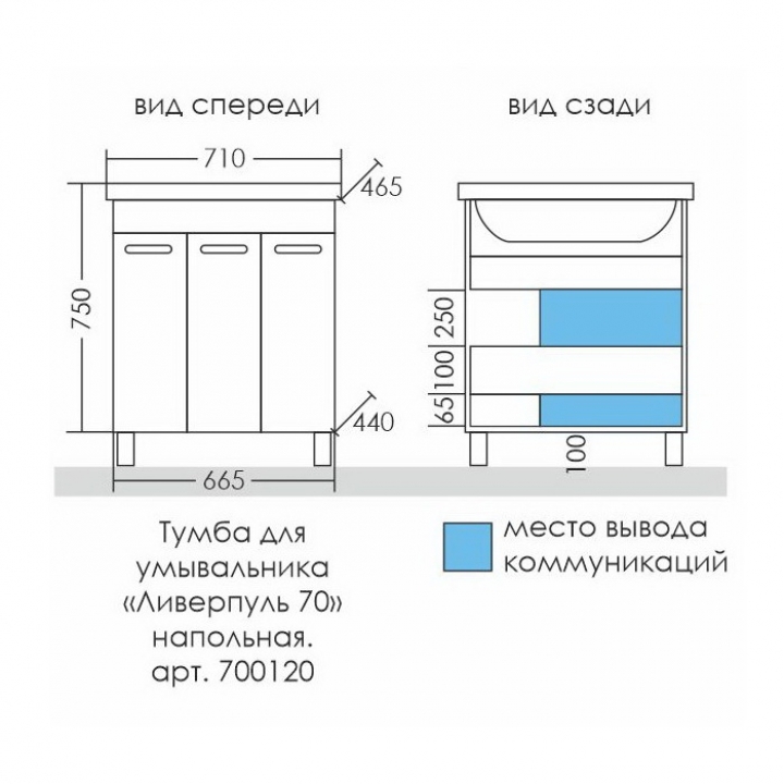 Габариты корпуса тумбы (ШхВхД): 71 х 85 х 46 см.