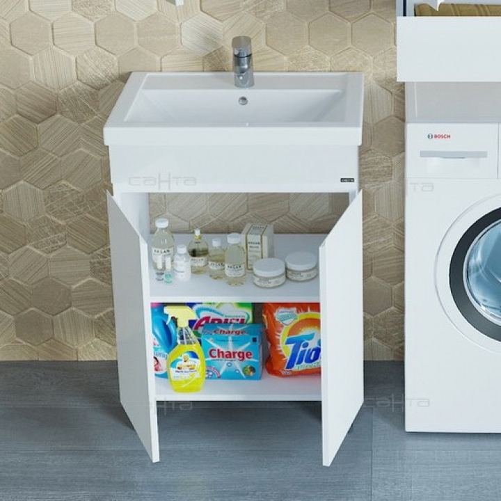 Тумба с раковиной Санта Марс 60 2 двери 700240 изготовлена из качественных материалов в современном элегантном стиле. Поможет в создании ультрамодной ванной комнаты с сохранением актуальной функциональности. Предназначена для использования в условиях повышенной влажности.