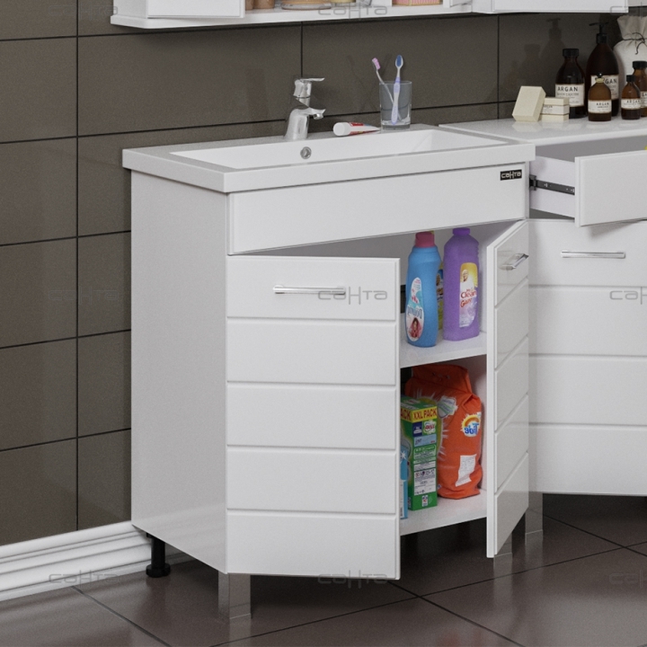 Тумба с раковиной Санта Омега 70 изготовлена из качественных материалов в современном элегантном стиле. Поможет в создании ультрамодной ванной комнаты с сохранением актуальной функциональности. Предназначена для использования в условиях повышенной влажности.