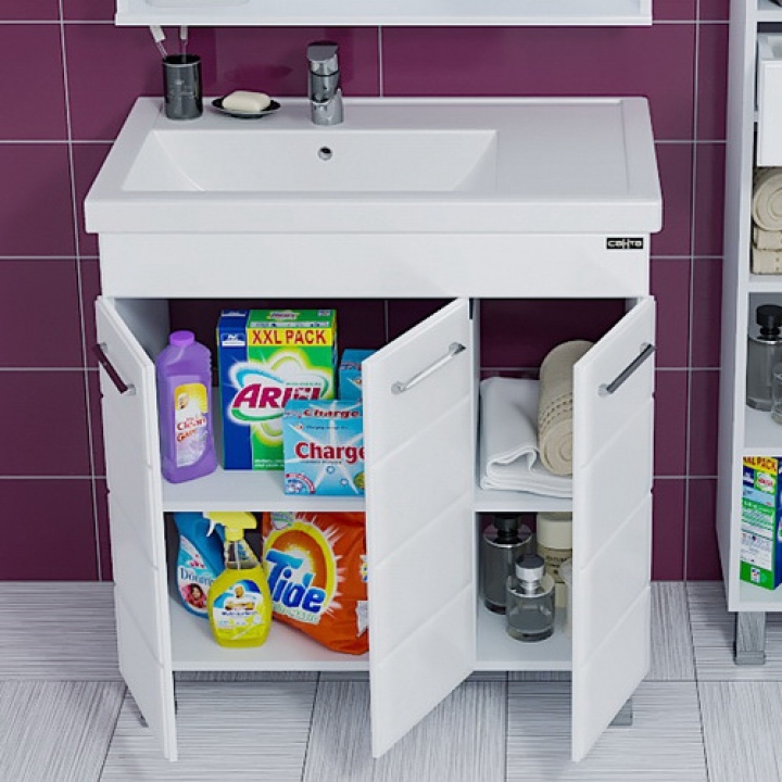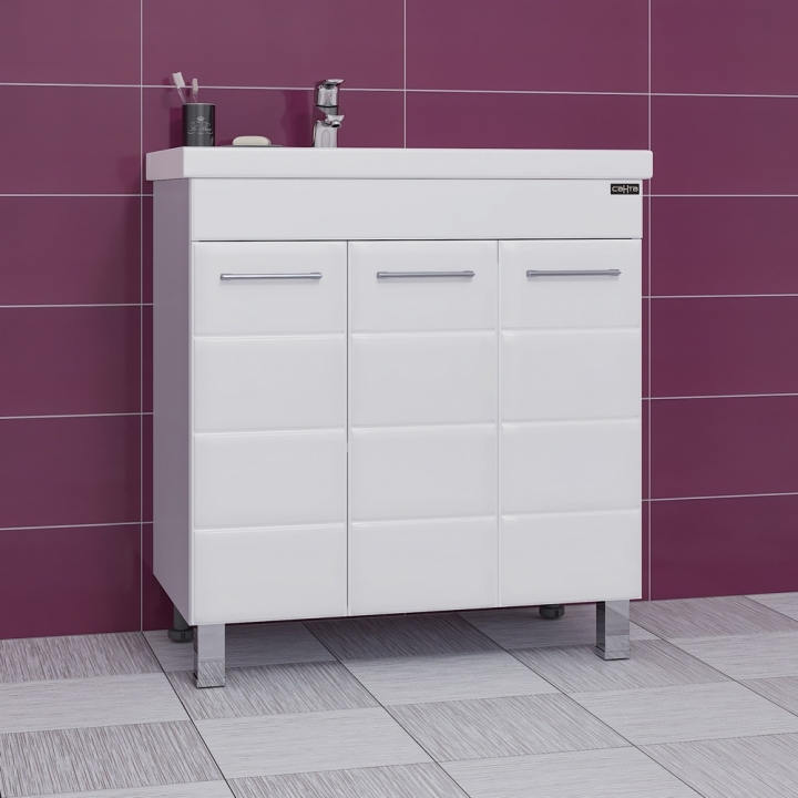 Тумба с раковиной Санта Омега 80 П изготовлена из качественных материалов в современном элегантном стиле. Поможет в создании ультрамодной ванной комнаты с сохранением актуальной функциональности. Предназначена для использования в условиях повышенной влажности.