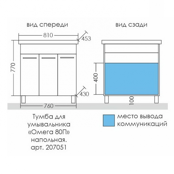 Габариты корпуса тумбы (ШхВхД): 81 х 85 х 45 см.