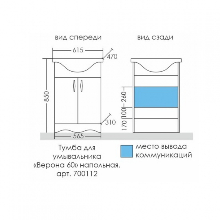 Габариты корпуса тумбы (ШхВхД): 62 х 85 х 47 см.