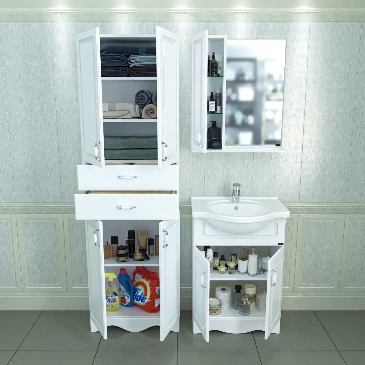 Фасад и корпус тумбы выполнены из МДФ и ЛДСП. Применяется многослойное покрытие лаками и эмалями лучших производителей делающих мебель долговечной и экологичной.