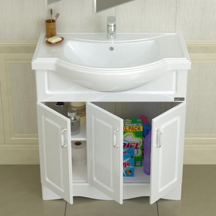 Тумба с раковиной Санта Верона 80 из качественных материалов в современном элегантном стиле. Поможет в создании ультрамодной ванной комнаты с сохранением актуальной функциональности. Предназначена для использования в условиях повышенной влажности.