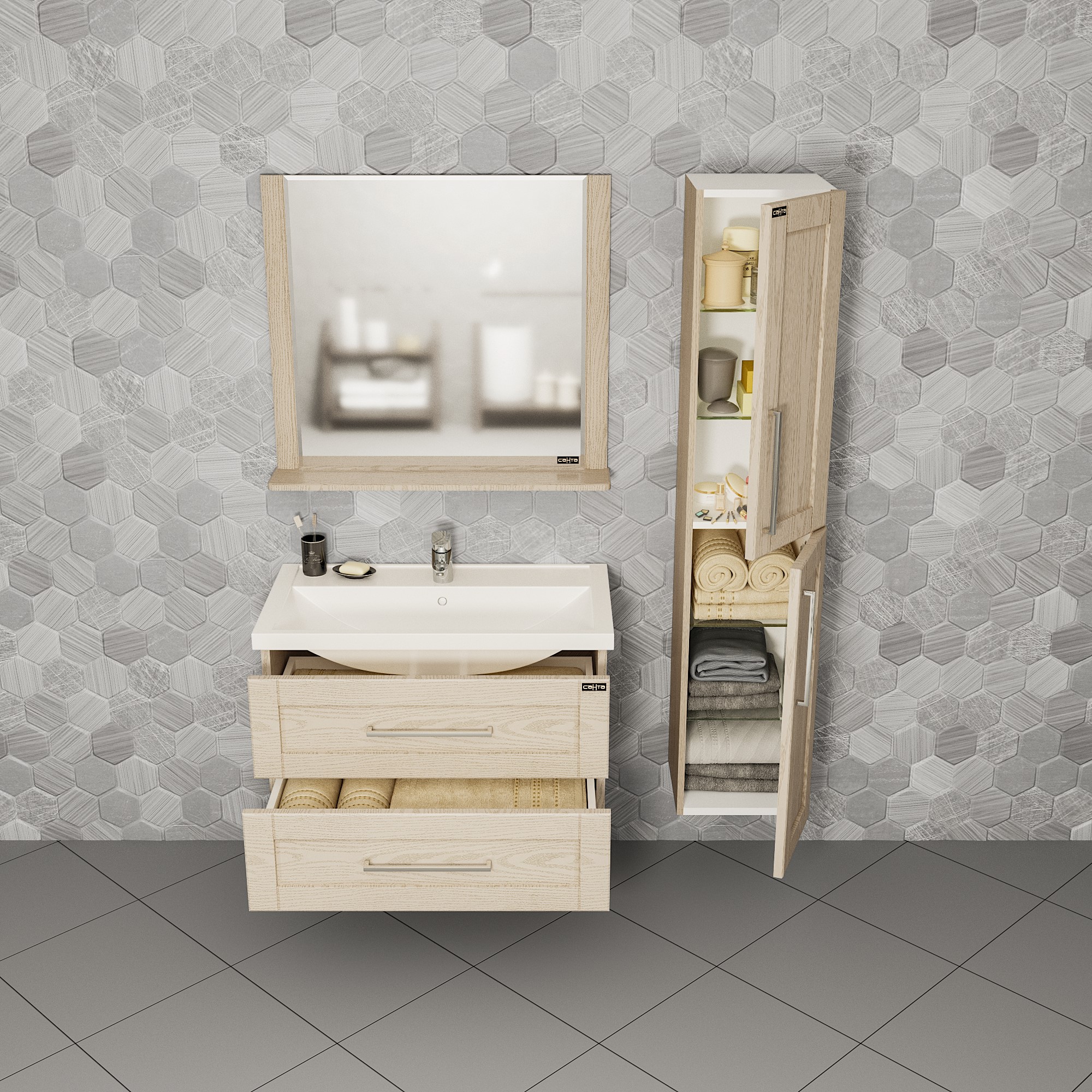 Тумба укомплектована раковиной Фостер 80.
