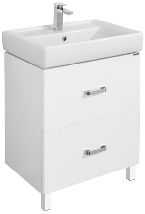 Тумба под раковину Акватон Америна 60 Н 1A169201AM010 с изящными глянцевыми опорами, с двумя внешними ящиками, и одним скрытым встроенным ящиком за верхним. Внешние ящики установлены на направляющие нижнего крепежа, обеспечивающие жесткое и надежное крепление и плавный ход. В направляющие встроены доводчики. Дополнительно организовано нижнее подключение труб водоснабжения и канализации. Корпус выполнен из ДСП с ламинированным покрытием, обладает повышенной влагостойкостью и сопротивляемостью износу, не выделяет вредных испарений, хорошо выдерживает воздействие бытовых химических средств, за исключением абразивных материалов и едких веществ и жидкостей. Фасадные детали изготавливаются из МДФ с пятислойной покраской.