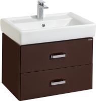 - В тумбе имеются два ящика, изготовленные из декоративной влагостойкой ДСП. Нижний ящик тумбы – широкий и вместительный – предназначен для крупных предметов, а в верхнем имеется специальная организация пространства, позволяющая хранить мелкие вещи