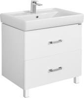 Тумба под раковину Акватон Америна 80 Н 1A169401AM010 с изящными глянцевыми опорами, с двумя внешними ящиками, и одним скрытым встроенным ящиком за верхним. Внешние ящики установлены на направляющие нижнего крепежа, обеспечивающие жесткое и надежное крепление и плавный ход. В направляющие встроены доводчики. Дополнительно организовано нижнее подключение труб водоснабжения и канализации. Корпус выполнен из ДСП с ламинированным покрытием, обладает повышенной влагостойкостью и сопротивляемостью износу, не выделяет вредных испарений, хорошо выдерживает воздействие бытовых химических средств, за исключением абразивных материалов и едких веществ и жидкостей. Фасадные детали изготавливаются из МДФ с пятислойной покраской.
