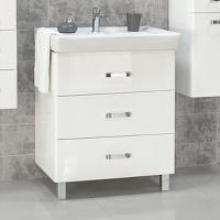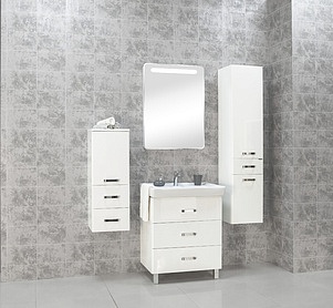 Тумба под раковину Акватон Америна 70 М 1A169001AM010 с тремя выдвижными ящиками и изящными глянцевыми опорами, что удобно в тех ванных комнатах, где стены недостаточно укреплены и есть сомнение, что они выдержат подвесную мебель. Направляющие нижнего крепежа обеспечивают жесткое и надежное крепление ящиков. Плавный ход ящиков со встроенными доводчиками. Дополнительно организовано нижнее подключение труб водоснабжения и канализации. Корпус выполнен из ДСП с ламинированным покрытием, обладает повышенной влагостойкостью и сопротивляемостью износу, не выделяет вредных испарений, хорошо выдерживает воздействие бытовых химических средств, за исключением абразивных материалов и едких веществ и жидкостей. Фасадные детали изготавливаются из МДФ с пятислойной покраской.