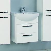 Тумба под раковину Акватон Ария 50 М 1A140001AA010 с двумя выдвижными ящиками. Корпус выполнен из ДСП с ламинированным покрытием, обладает повышенной влагостойкостью и сопротивляемостью износу, не выделяет вредных испарений, хорошо выдерживает воздействие бытовых химических средств, за исключением абразивных материалов и едких веществ и жидкостей. Фасадные детали изготавливаются из МДФ с пятислойной покраской.