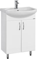 Тумба под раковину Акватон Онда 60 1A122801ON010 на двух хромированных ножках, регулируемых по высоте, с двумя распашными дверцами и с одной полкой за ними, с нейтральной фрезеровкой, выполнена в стиле минимализм. Корпус выполнен из ДСП с ламинированным покрытием, обладает повышенной влагостойкостью и сопротивляемостью износу, не выделяет вредных испарений, хорошо выдерживает воздействие бытовых химических средств, за исключением абразивных материалов и едких веществ, и жидкостей. Фасадные детали изготавливаются из МДФ с пятислойной покраской.