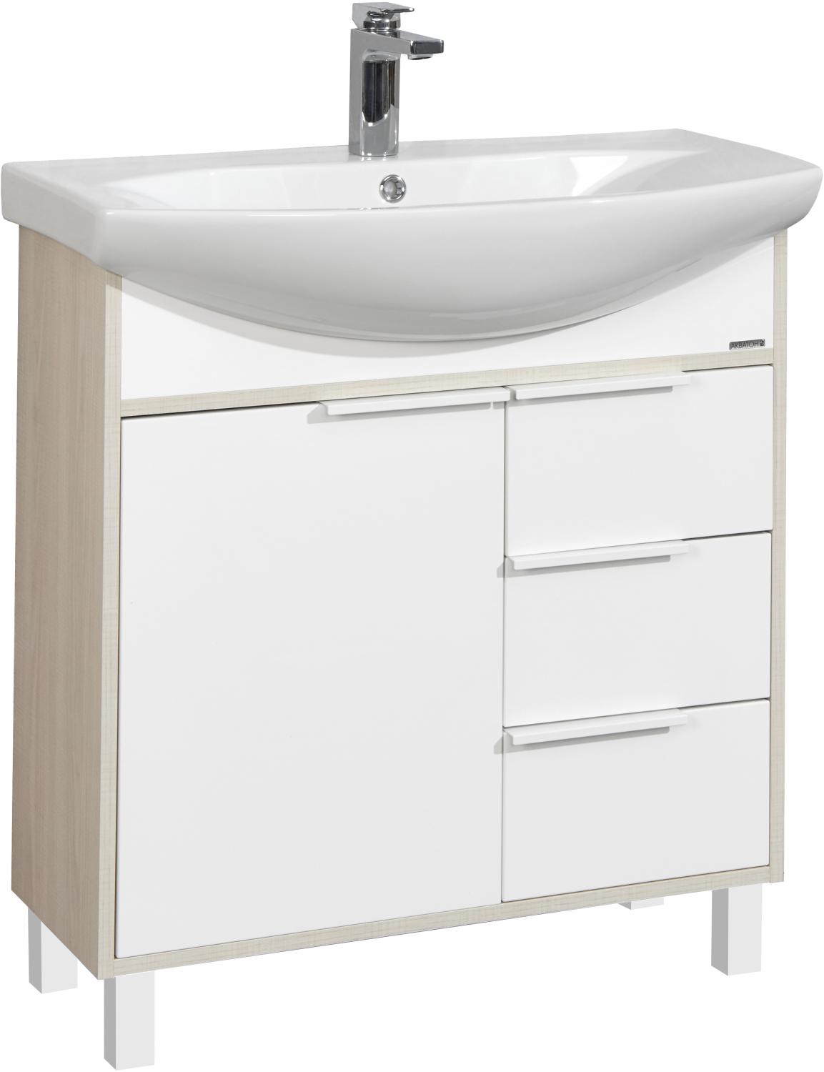 Белоснежный цвет фасадов в сочетании со вставками и боковыми стенками Ясень фабрик придадут вашей ванной комнате ощущения свежести и уюта. Благодаря лаконичным белым ручкам на тумбе и отсутствию лицевой фурнитуры на шкафчике коллекция универсальна, впишется в любую ванную комнату.