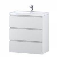 Тумба под раковину AM.PM Gem S 75 M91FSX0752WG белая, с глянцевой поверхностью, с тремя выдвижными ящиками, с двумя хромированными ножками, для длительного срока службы в ванных комнатах с повышенной влажностью.