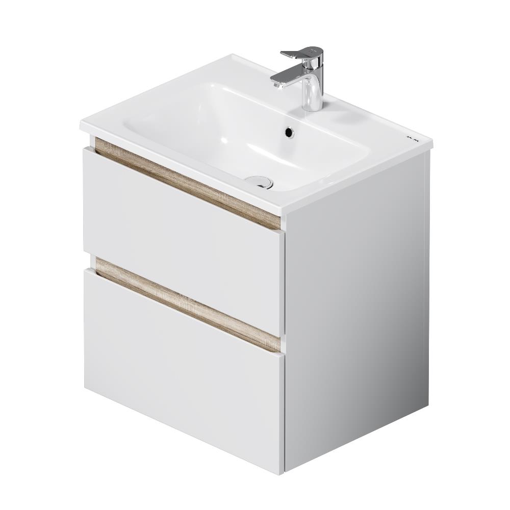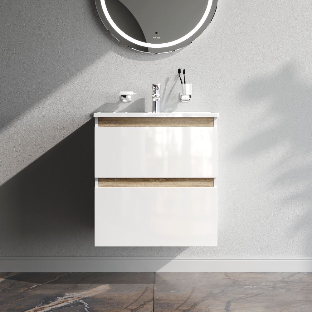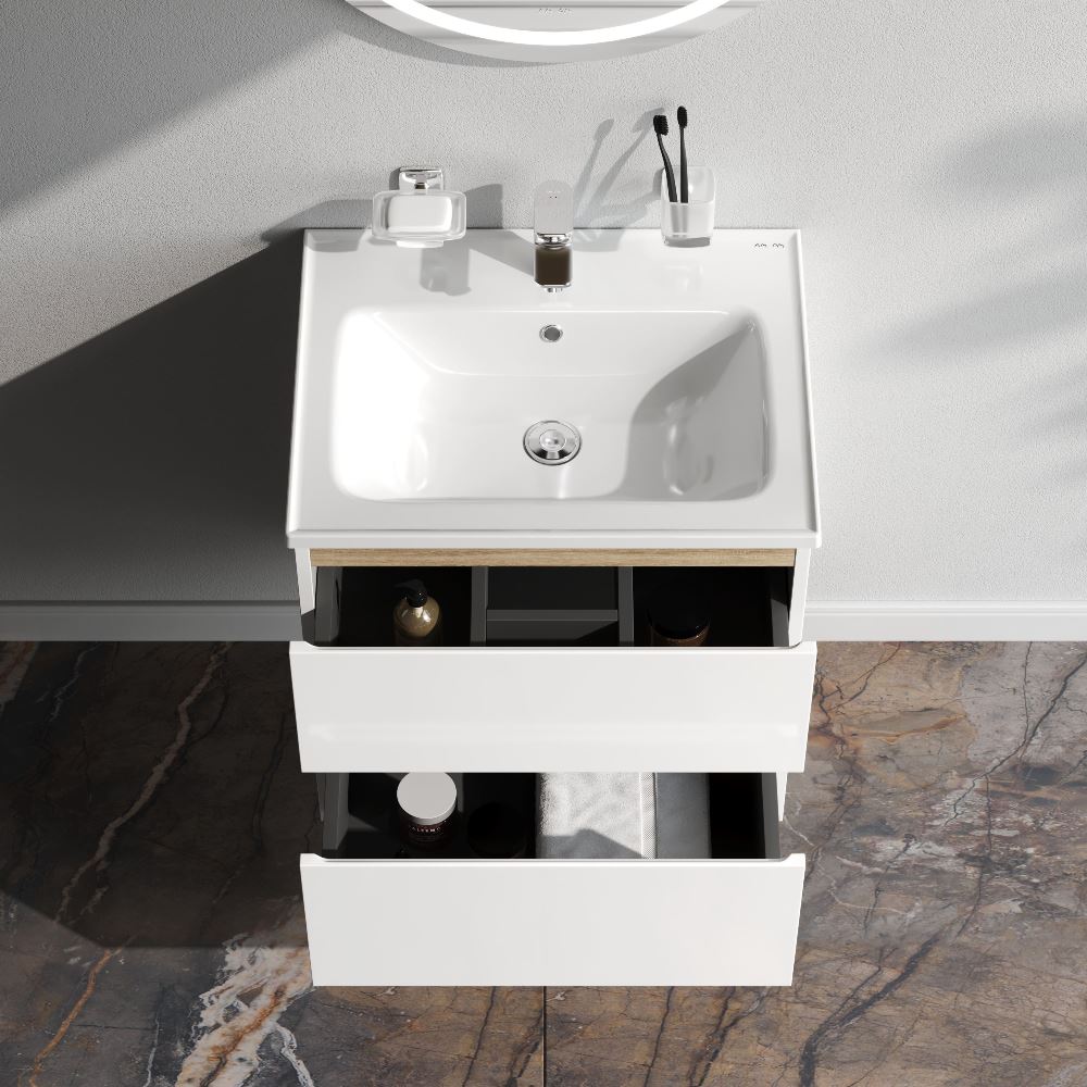 - Подвесная тумба бренда AM.PM коллекции X-Joy с белыми глянцевыми фасадами, дополненными отделкой под светлое дерево. Функциональный органайзер в первом ящике позволит хранить необходимые косметические средства под рукой и в полном порядке.