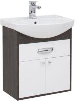 - Внутреннее пространство тумбы очень функционально: выдвижной ящик вверху с отделениями под мелочь и распашные дверцы внизу с аккуратными круглыми ручками как кнопочки