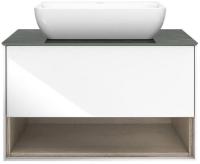 - Подвесная тумба в белом цвете с одним выдвижным ящиком и открытой полкой