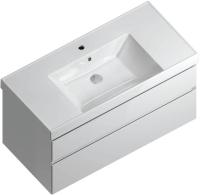 - Подвесная тумба белая глянцевая с двумя выдвижными ящиками