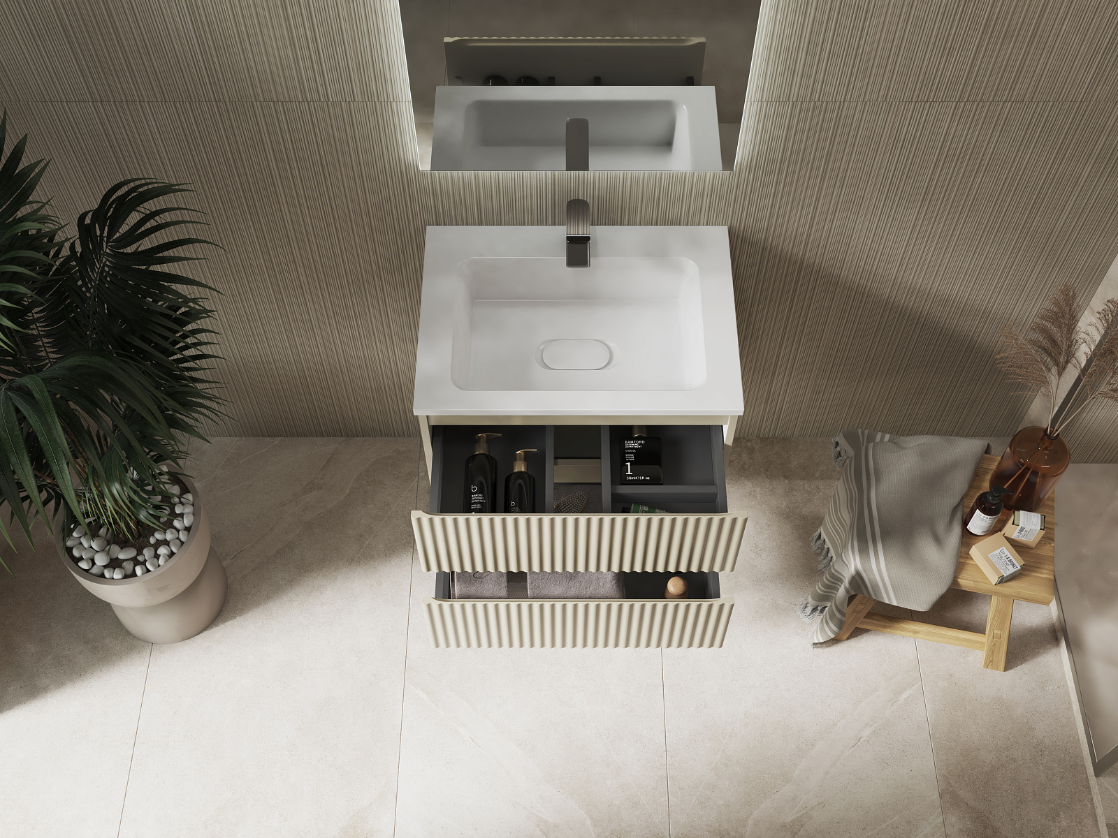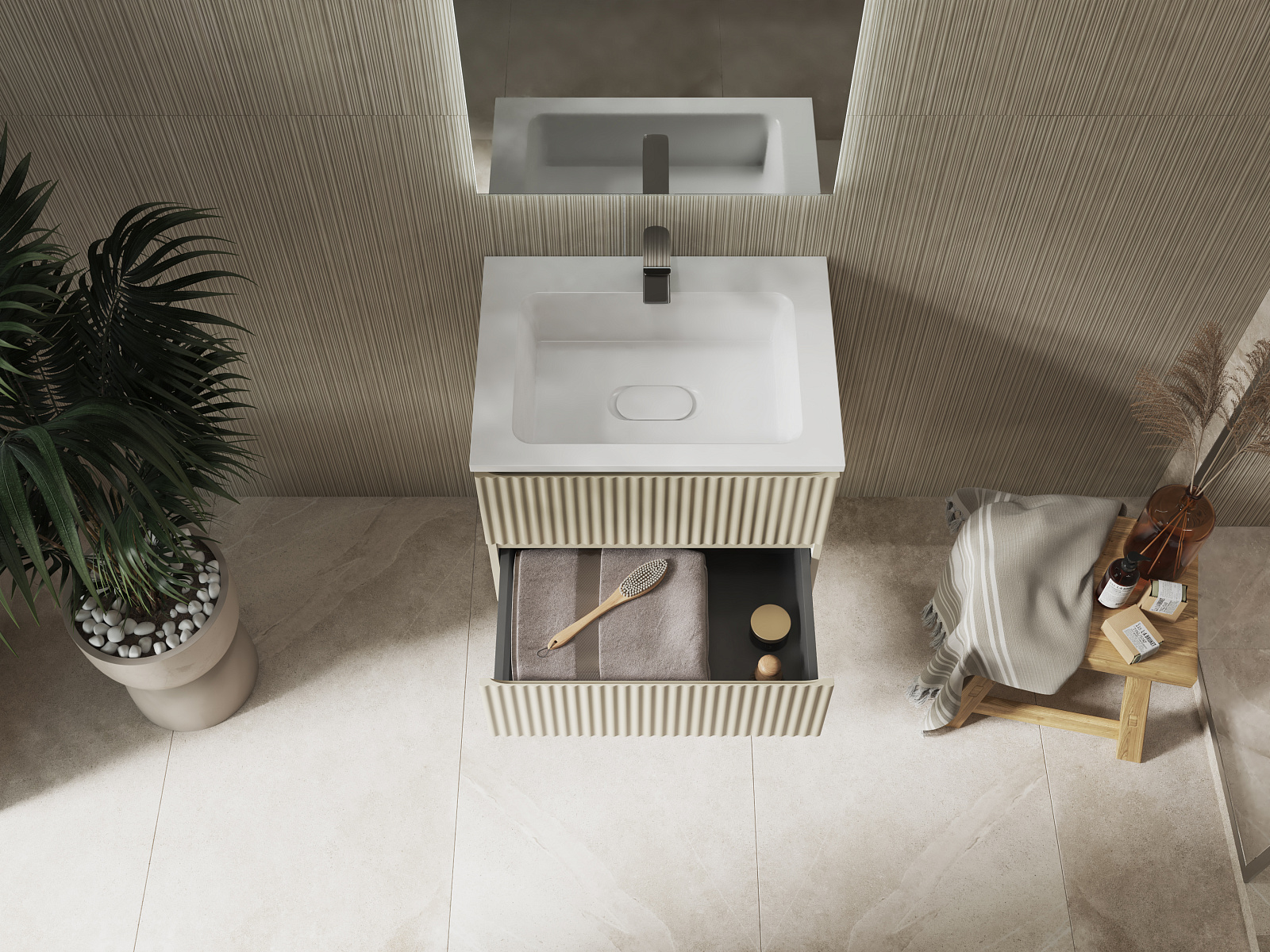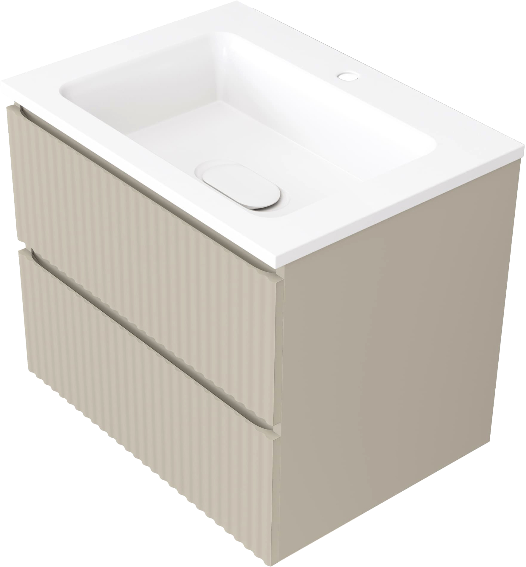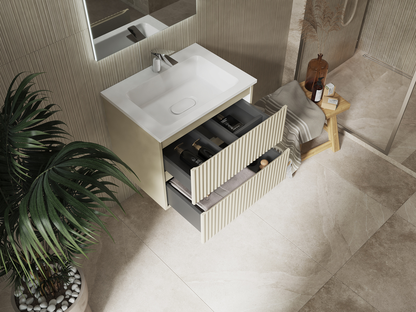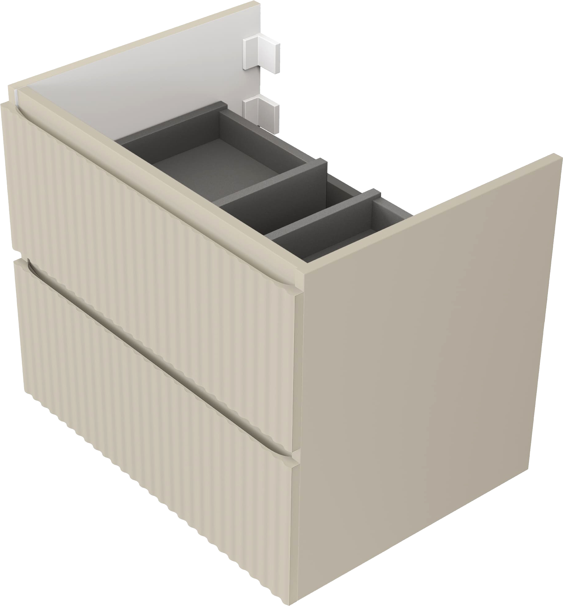 Тумба выполнена из влагостойких материалов с антибактериальным покрытием. Оснащена 2 вместительными ящиками с системой плавного закрывания. Надежная фурнитура выдерживает до 80 000 циклов работы.