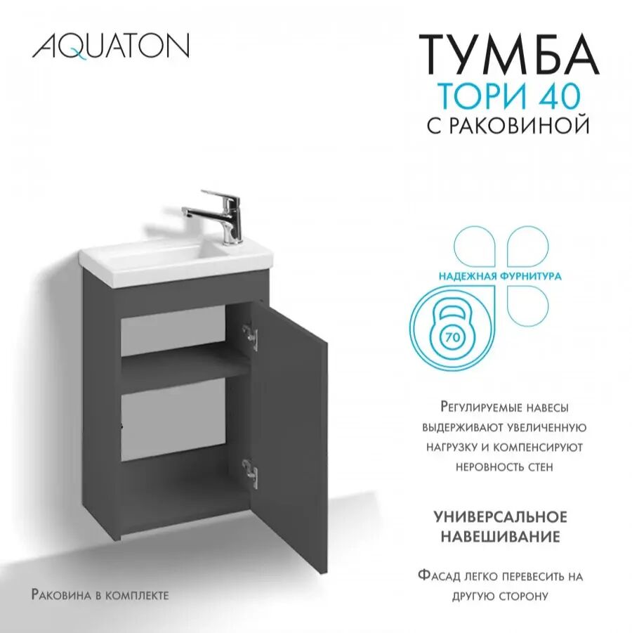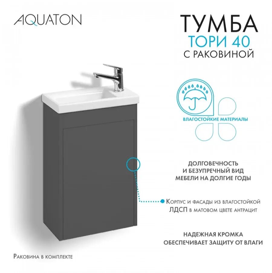 - Коллекция AQUATON Тори - идеальное решение для современных интерьеров, выполненное в минималистичном дизайне. Эта мебель не только стильная, но и функциональная, что делает её отличным выбором для любого санузла.