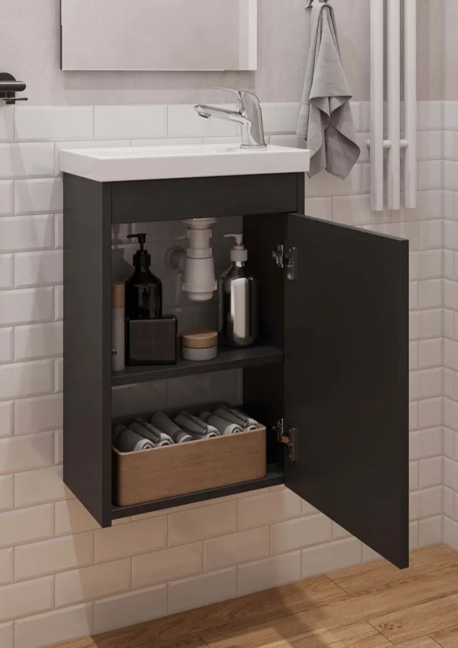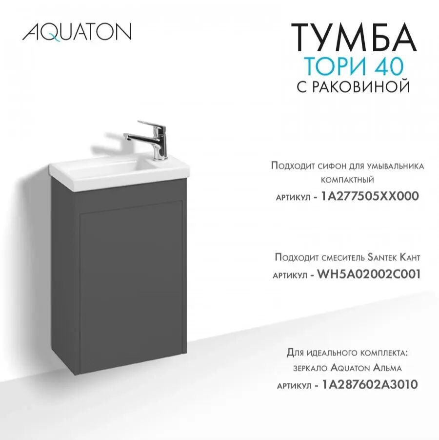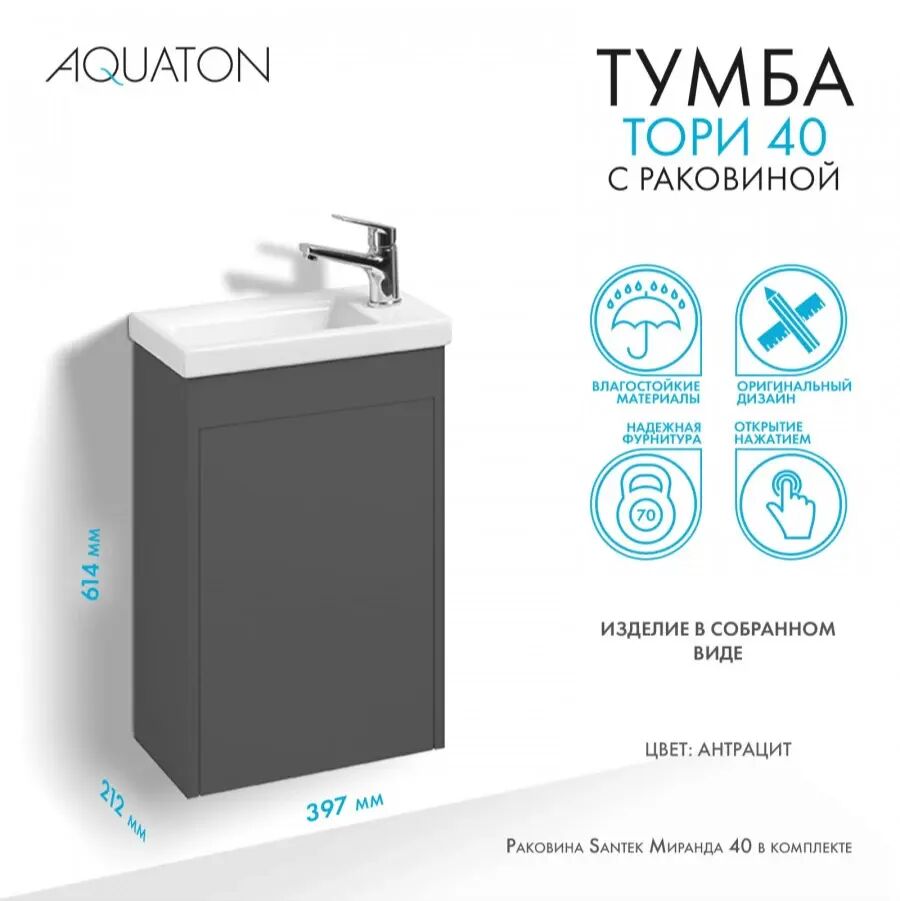 - Готовое решение: в комплект входит раковина Santek Миранда 40, что избавляет от необходимости отдельно подбирать сантехнику.
