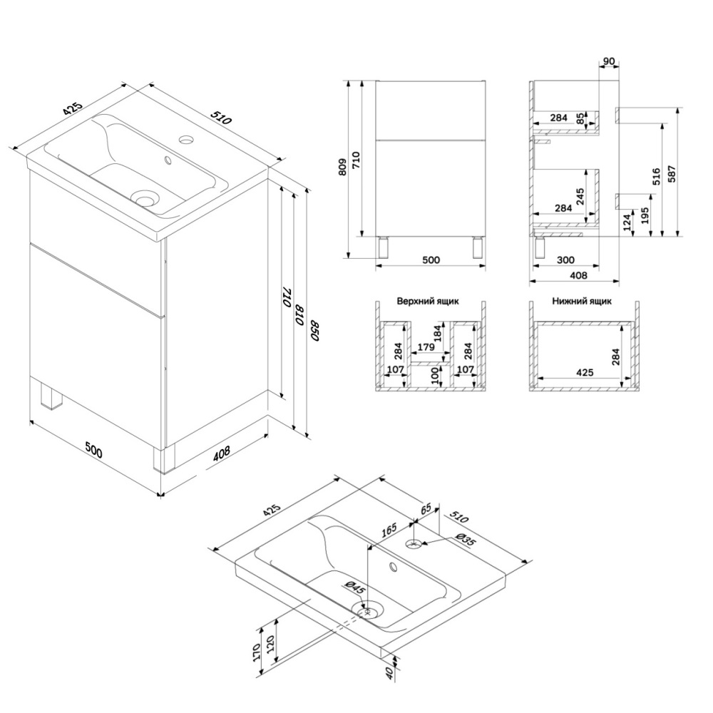 Напольная тумба бренда AM.PM коллекции Gem изготовлена из влагостойкого ЛДСП. Внутреннее пространство двух вместительных ящиков представлено в цвете "антрацит" с антискользящим эффектом. В верхнем ящике находится удобный органайзер для хранения гигиенических принадлежностей. Благодаря системе отделений органайзера, каждый предмет имеет свое место, что обеспечивает порядок и удобство при использовании. Такая система хранения позволяет экономить место и помогает поддерживать чистоту ванной комнаты. Фурнитура push-to-open - открытие ящика легким нажатием на фасад. Направляющие скрытого монтажа обеспечивают плавное выдвижение ящиков. Материал тумбы - влагостойкая ЛДСП. Покрытие фасада и корпуса - ламинат. Размер (Ш/Г/В): 510x425x850
