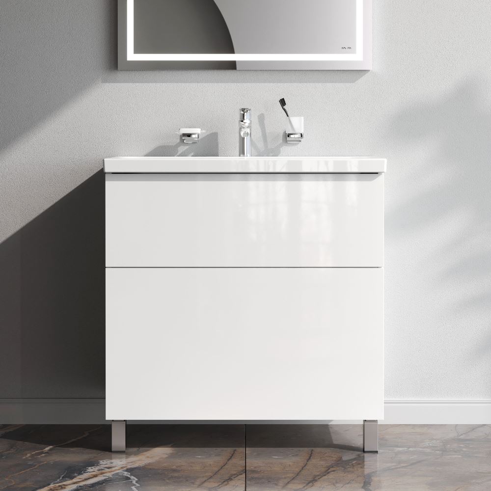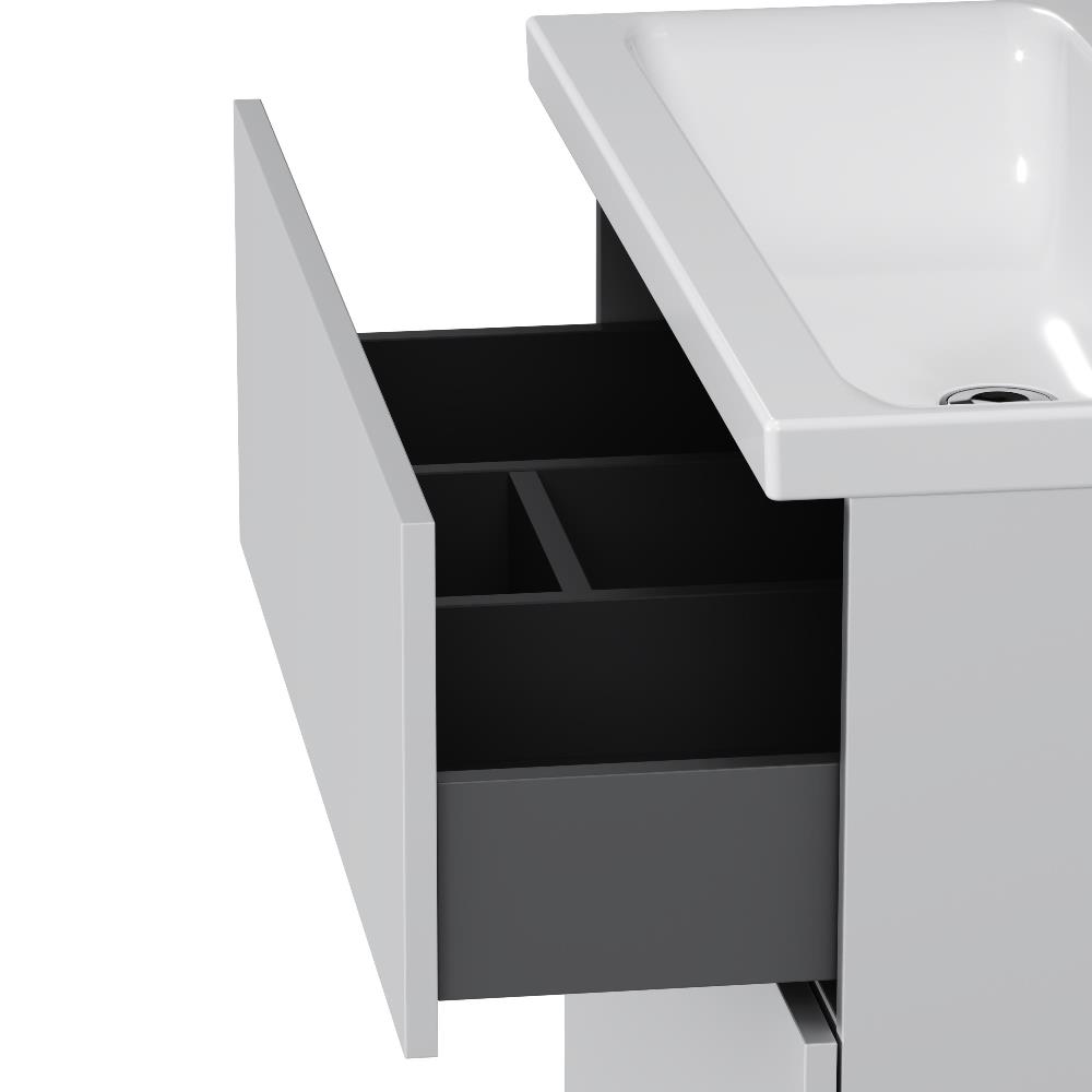 Подвесная тумба бренда AM.PM коллекции Gem идеально подойдет тем, кто предпочитает минимализм в интерьере. Современный европейский дизайн от студии DanelonMeroni (Великобритания/Италия). Фурнитура push-to-open - открытие ящика легким нажатием на фасад. Два ящика с антискользящим покрытием цвета "антрацит" – европейский стандарт.