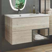 - Подвесная тумба с двумя ящиками оборудованными системой push-to-open (открытие при нажатии) пространством для открытого хранения