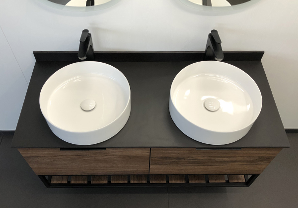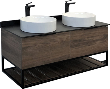 - Подвесная тумба-умывальник с двумя выкатными ящиками с плавным закрыванием