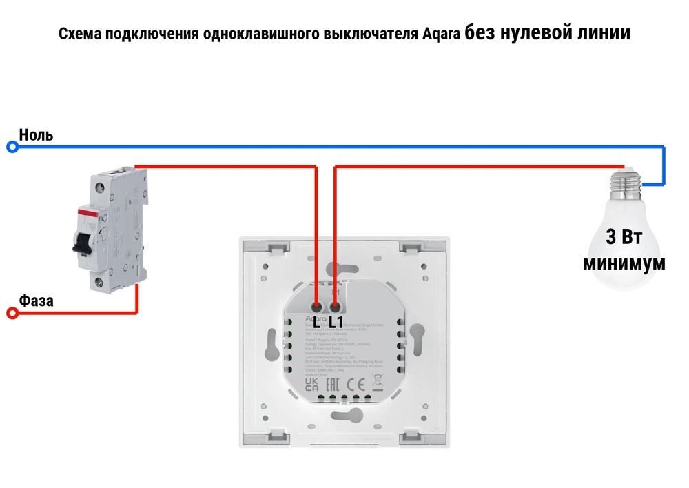 Версия выключателя «No neutral» устанавливается в разрыв фазы без использования нейтрального провода.