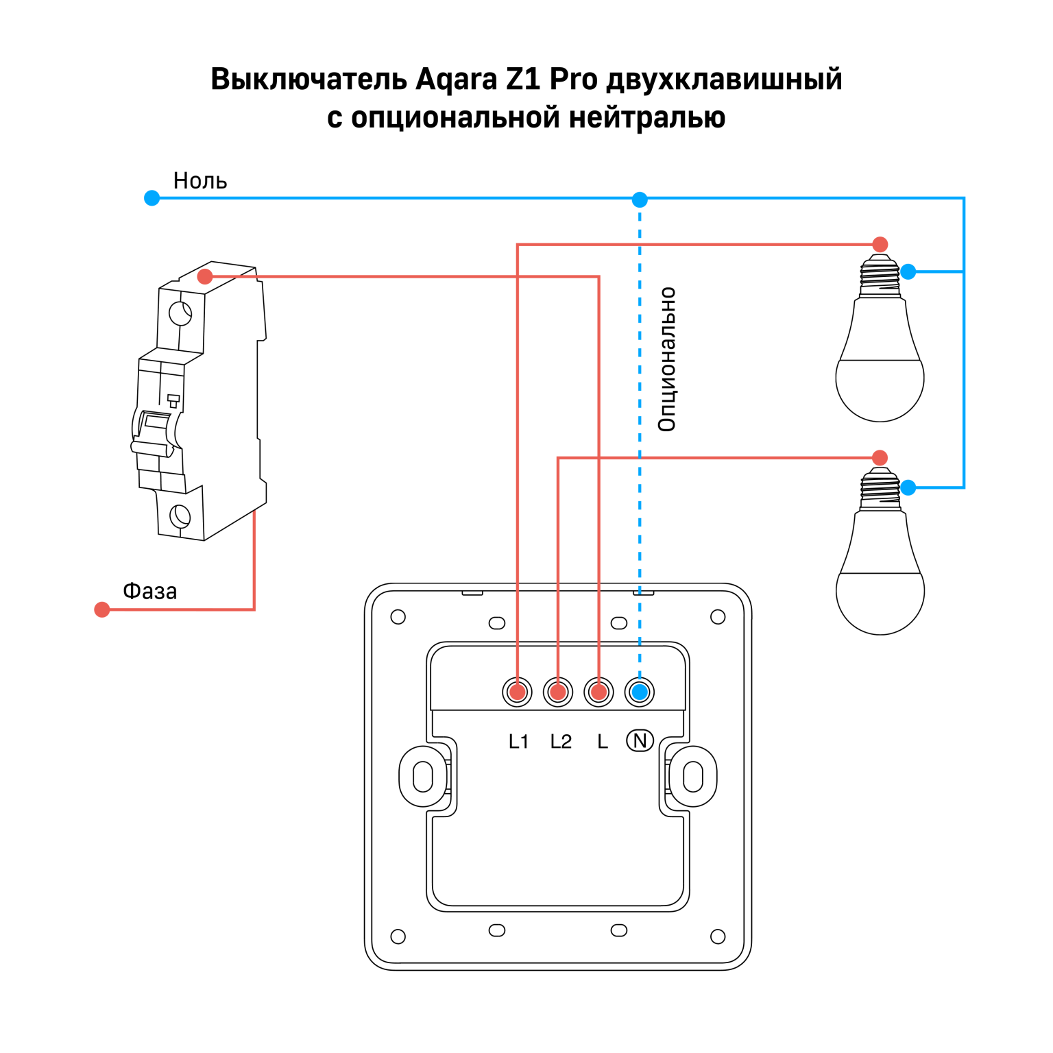 Опциональная нейтраль. Подключение линии ноля к выключателю не является обязательным, но расширяет его функционал. При подключении нейтральной линии доступен мониторинг энергопотребления и отсутствует требование к минимальной нагрузке. Без нейтральной линии минимальная нагрузка — 3 Вт.