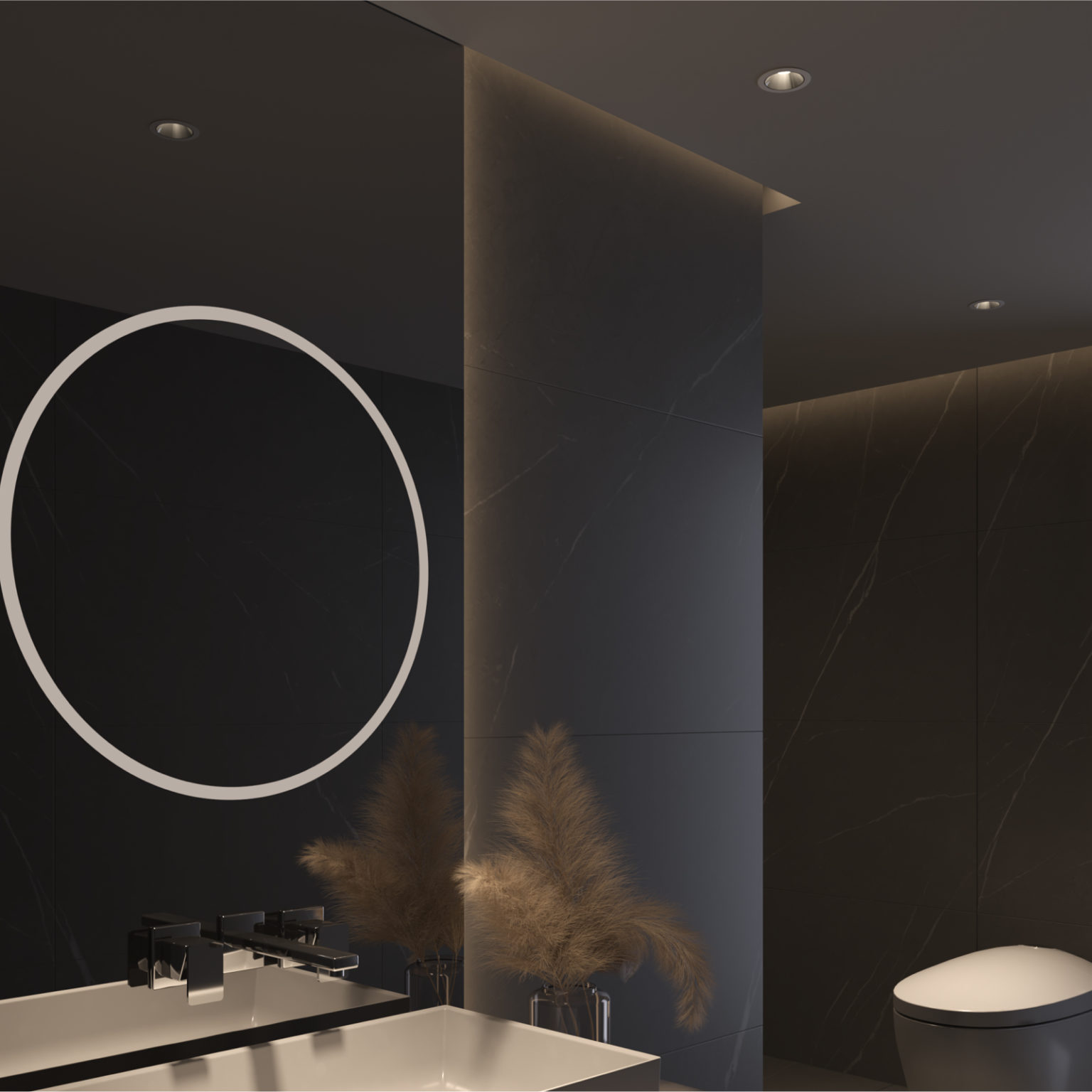 Для рассеянного света идеально подойдет светильник 60°, его можно использовать для основного освещения и закрепить сразу на потолке. Поворотной функции из-за большего градуса рассеивания у светильника нет.