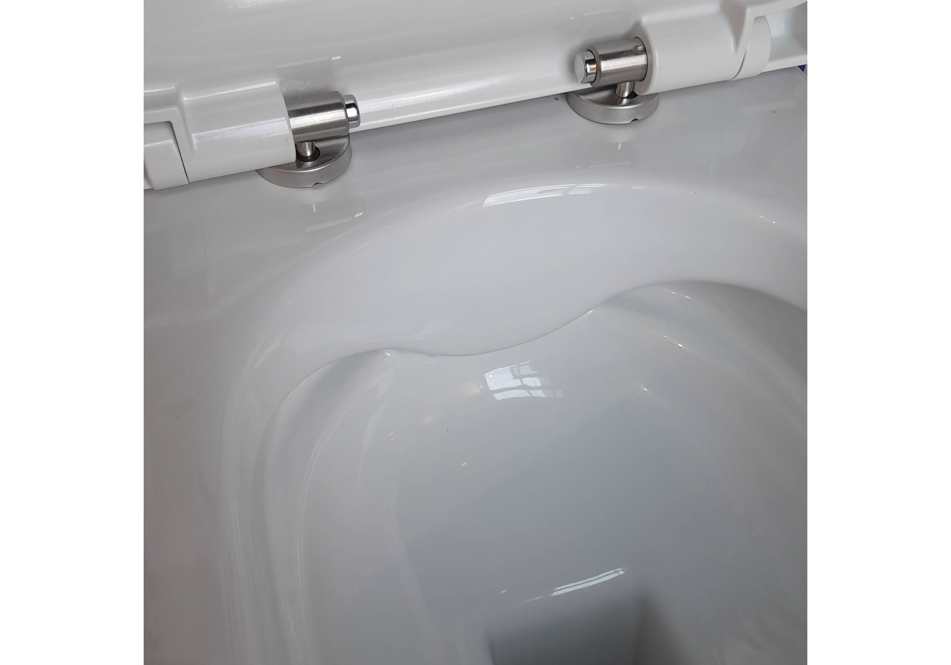 - Безободковая конструкция чаши обеспечивает гигиеничность, отсутствие скрытых участков и простоту в уходе.