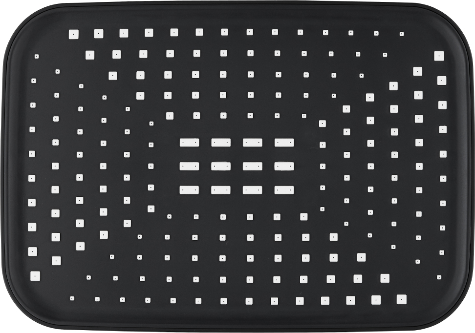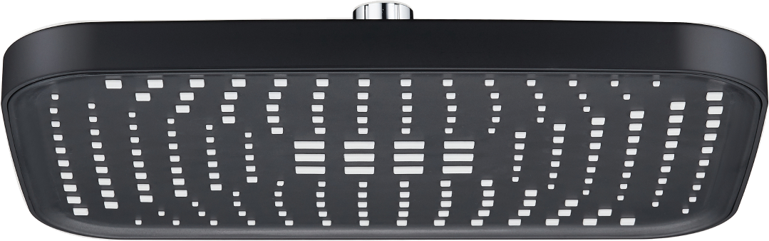 Верхний душ с регулировкой угла наклона 300х210 мм создаёт эффект тропического дождя, что дарит непередаваемые эмоции во время ежедневных банных процедур. Форсунки верхнего душа с функцией легкого очищения от известкового налета. Цвет матовый черный.