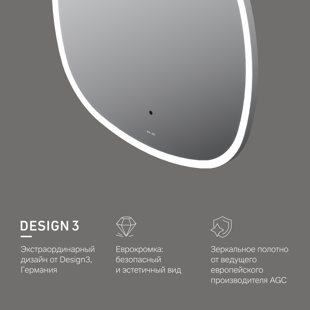 - Сенсор нового поколения позволяет управлять включением/выключением и яркостью LED-подсветки без касания зеркального полотна