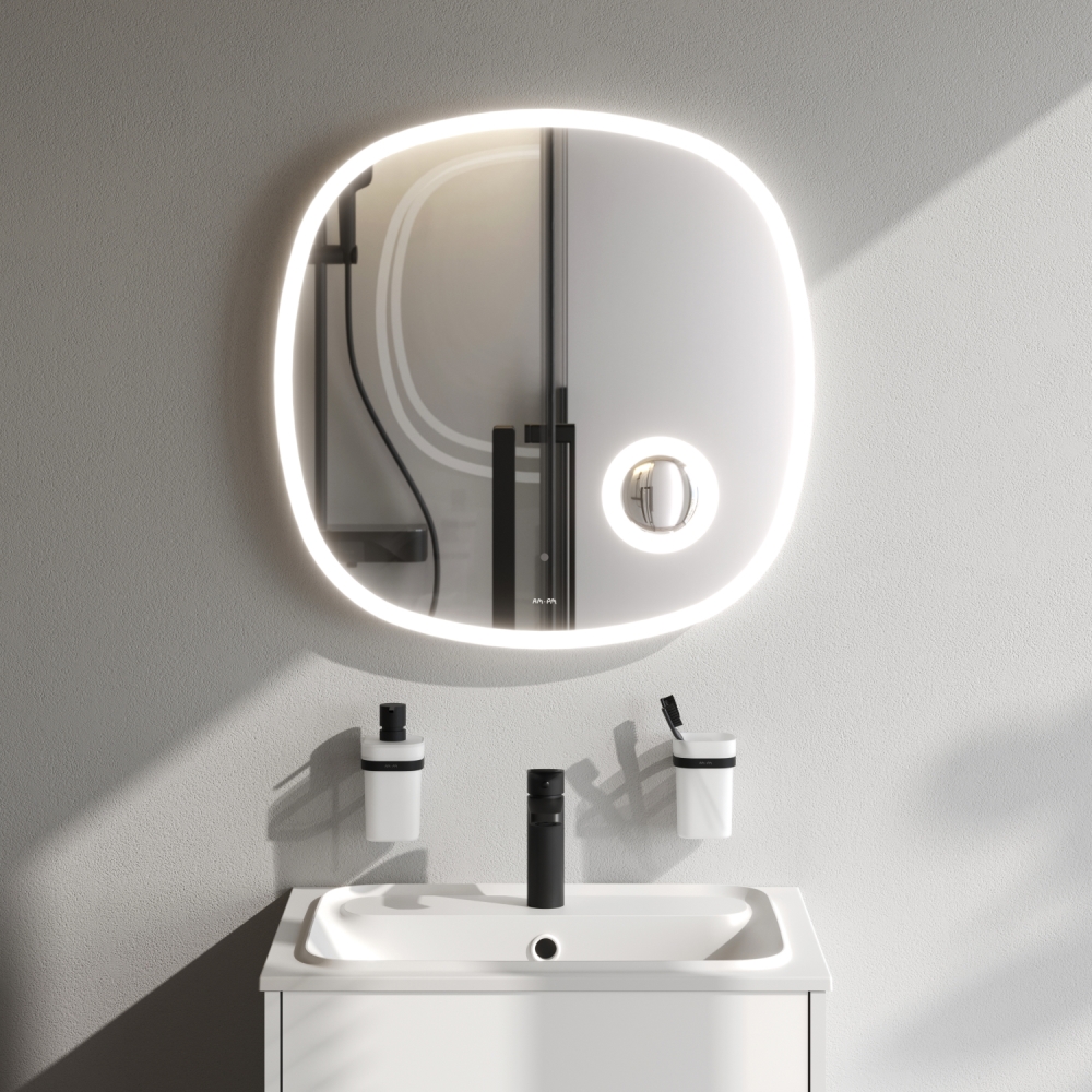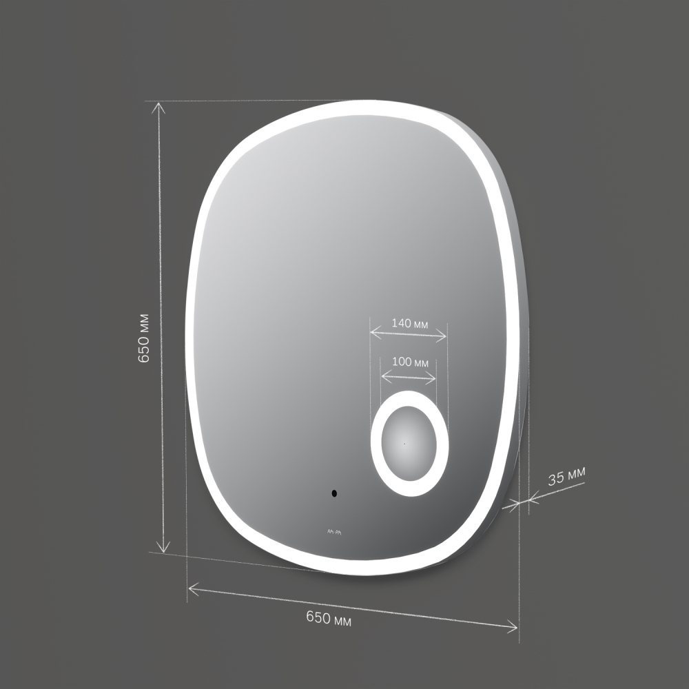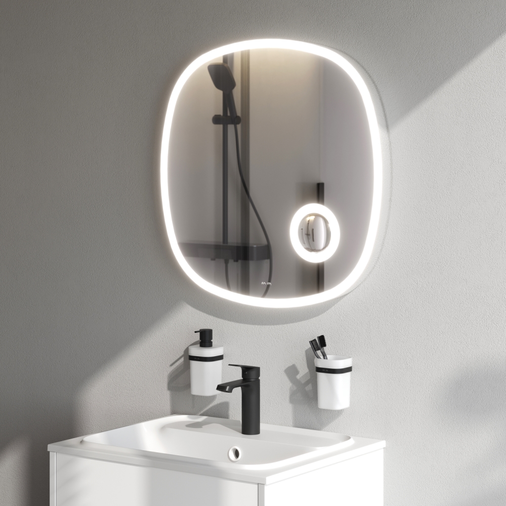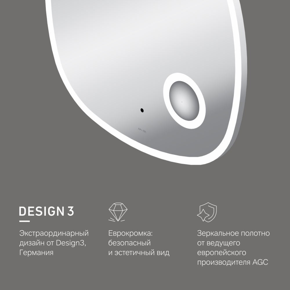 - Сенсор позволяет управлять включением/выключением и яркостью LED-подсветки без касания зеркального полотна. Зеркало дольше остается чистым