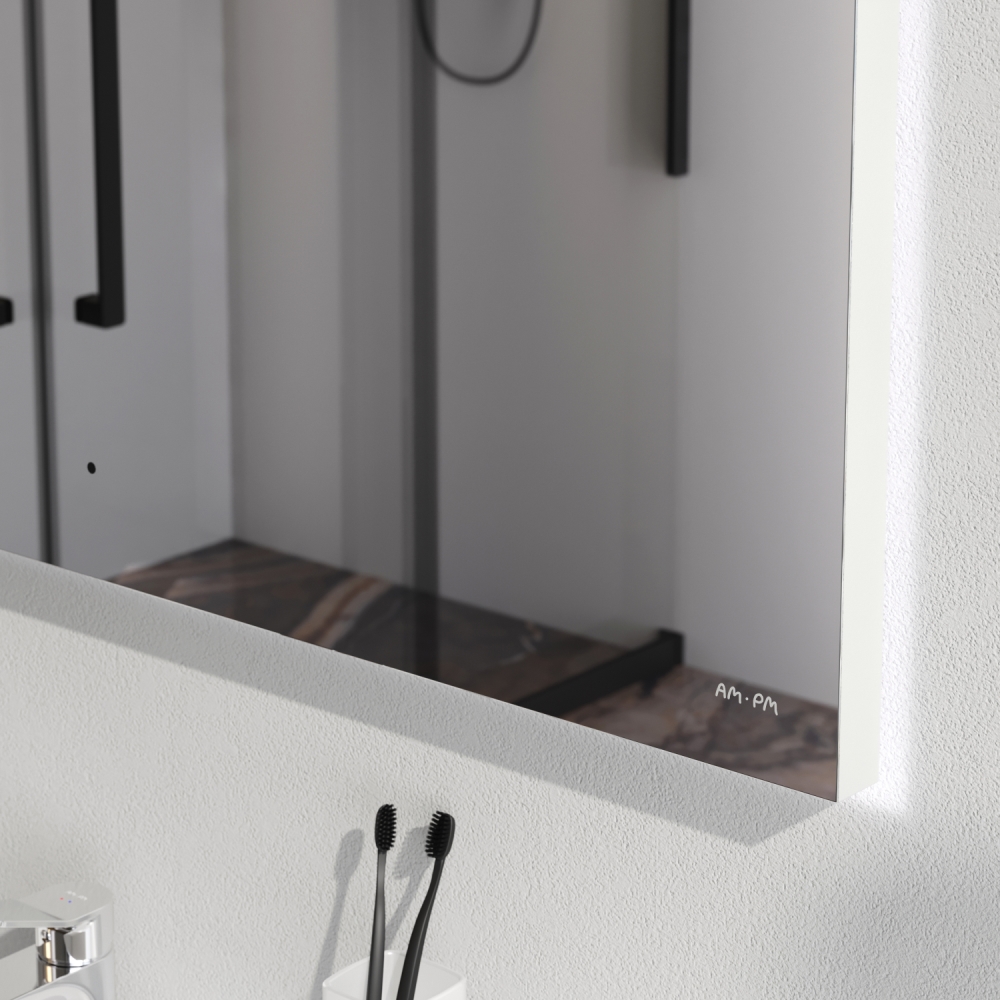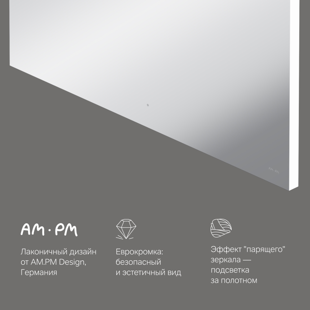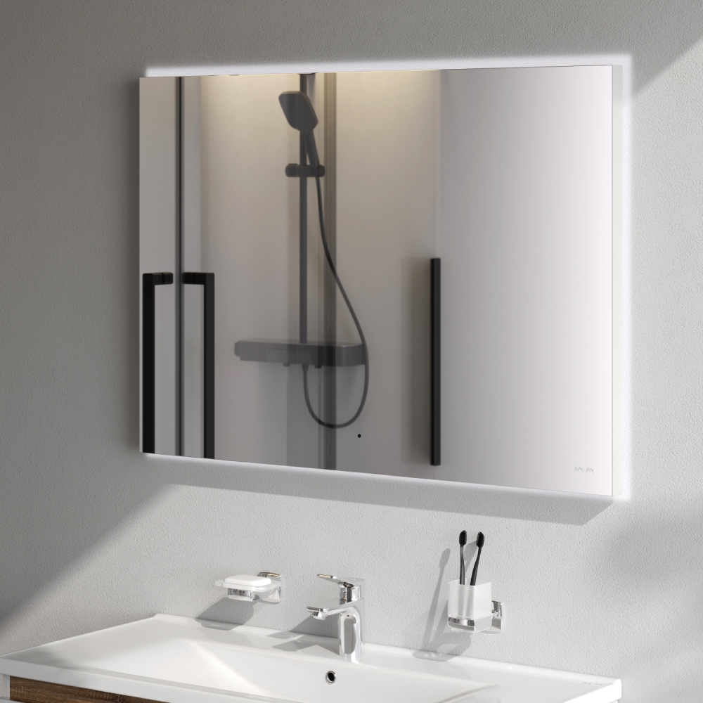 - Стильное решение для ванной комнаты. Визуальный эффект "парящего" зеркала добавляет легкости интерьеру. Подсветка естественного, дневного цвета не искажает отражение.